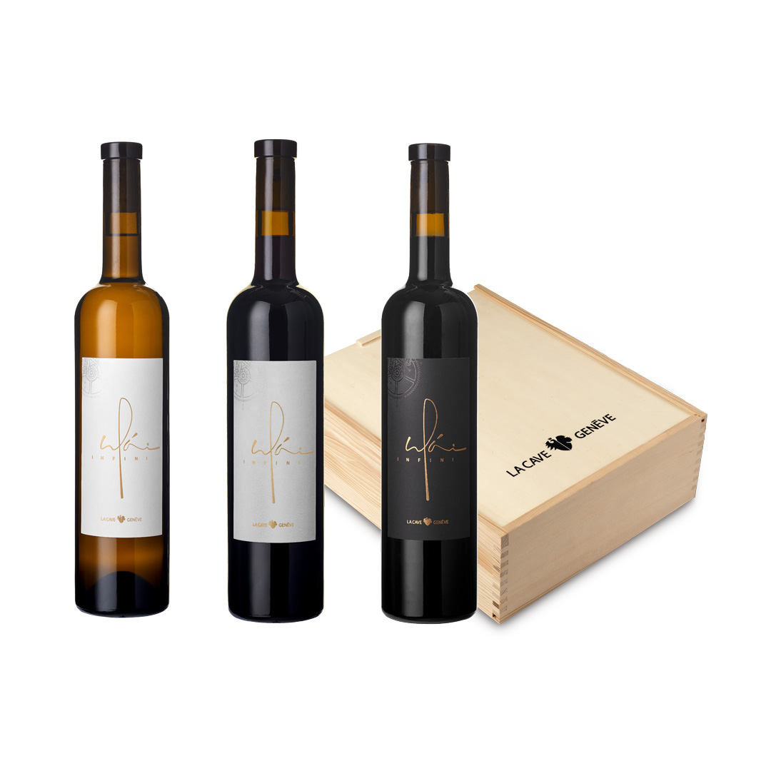 En terres genevoises, la culture du savoir-faire et de la pré­cision est un art qui s’applique aussi bien à l’horlogerie qu’à l’œnologie. Et ainsi, complétée par un troisième nectar qu’est l’Infini Syrah, ce coffret trilogie infini vous invite à plonger au cœur de ce précieux et merveilleux univers.